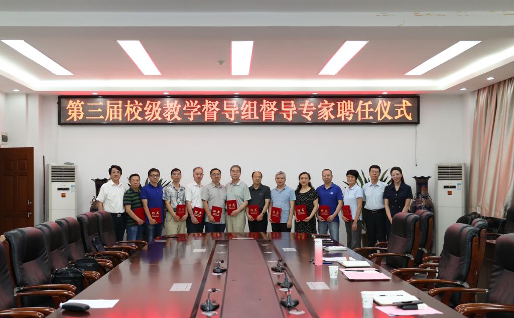 7月17日上午,学校在沣惠校区教学楼九楼会议室举行第三届校级教学督导专家聘任仪式。校长曹庆年、副校长宋文学、质评处、教务处、学生工作部(处)、各二级学院负责人及教学督导组全体成员参加了会议。会议由质评处处长刘宁主持。