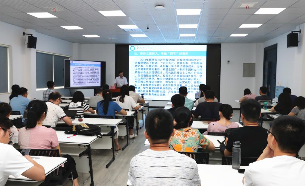 党委宣传部、人事处、学生工作部(处)、科技处、教务处、质评处、图书馆、创新创业学院等部门负责人分别从师德师风建设、人事人才政策、学生管理、教学管理、教学质量、科学研究、图书资源及创新创业等方面对新教师进行了相关政策解读。培训还特邀西安电子科技大学李刚教授作了题为《争做新时代高校教师的模范》的报告,勉励新教师勇做新时代最美奋斗者。