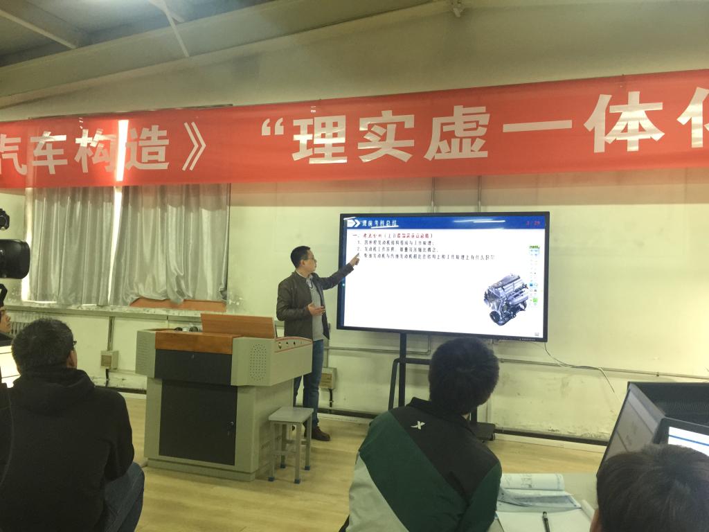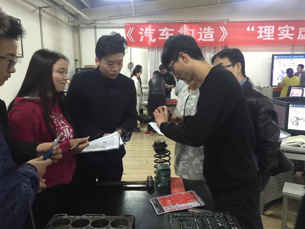 各位老师与学生共同参与理论课程学习、虚拟仿真软件模拟拆装及操作台实物拆装整个过程,亲身感受了全新教学模式。授课结束后,车辆工程学院副院长杨亚萍向大家介绍了该课程改革项目建设的过程及相关经验,各位教师针对课程的内容组织、过程实施等方面进行了现场交流,并提出了许多建议和意见。