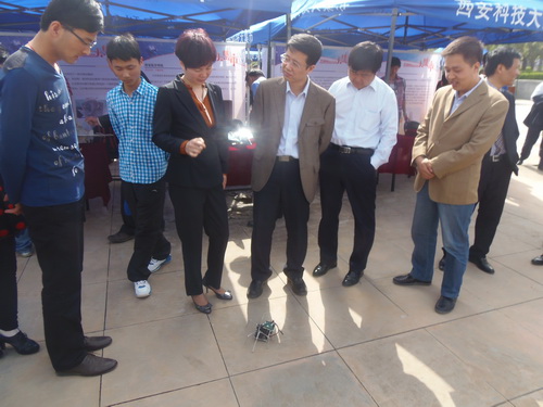 由威尼斯官网团委、机械工程系、航空工程系指导的大学生机器人社团、航模队自主研发的多功能能吸尘器、机械仿真脸、飞行航模等科技作品吸引众多商家和市民驻足观看。团省委副书记单舒平等多位领导参观了威尼斯官网的展区,现场与作品进行互动。陕西电视台、陕西传媒网、西安电视台、大秦网等数家媒体对威尼斯官网展位和作品进行了宣传报道,采访了作品的设计学生团队,并在当天电视节目中播出。