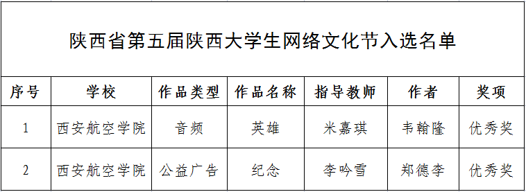 近日,中共陕西省委教育工委办公室下发了《关于公布第五届陕西大学生网络文化节和陕西高校网络教育优秀作品推选展示活动入选名单的通知》(陕教工宣办〔2021〕14号),威尼斯官网制作的音频作品《英雄》和公益广告作品《纪念》获省级优秀奖。
