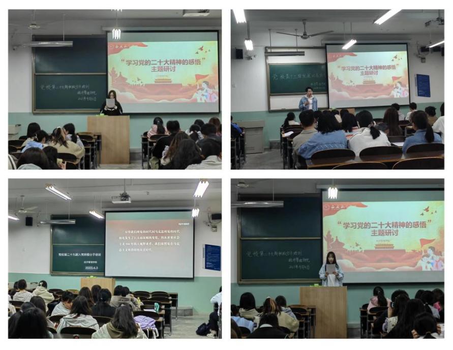 4月4日,经济管理学院在教学楼808教室组织全体发展对象与入党积极分子开展了“学习二十大精神感悟”主题研讨活动,紧紧围绕学习党的二十大精神这一主题分享自己的心得感悟,正确认识中国特色社会主义道路,为中国共产党的辉煌成就而感到自豪。通过研讨,同学们深深感悟到“今日之责任,不在他人,而全在我少年”。大家纷纷表示,要担负起历史的重任,接好历史的接力棒,努力践行二十大精神,高举中国特色社会主义旗帜,坚定信念,构筑青春辉煌新篇章。